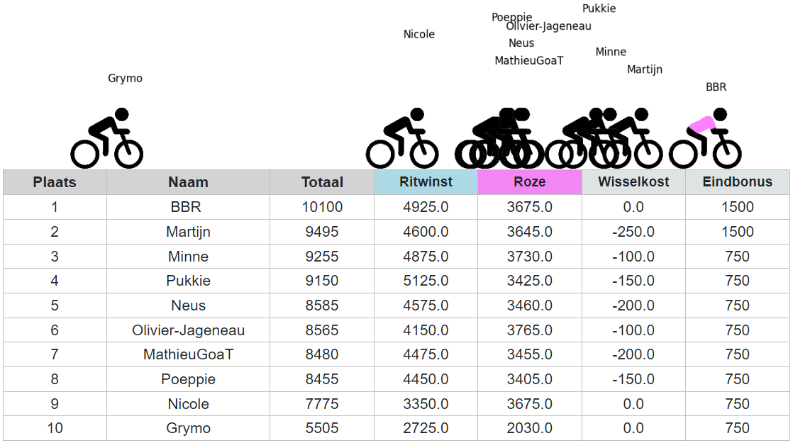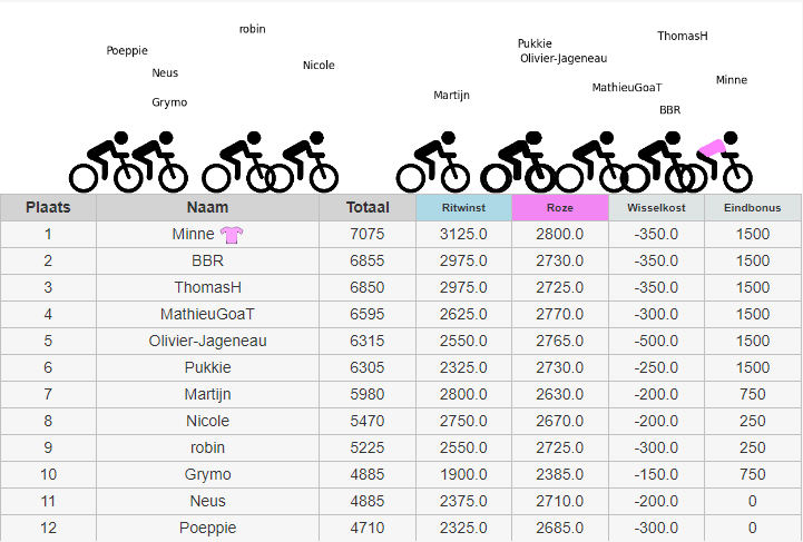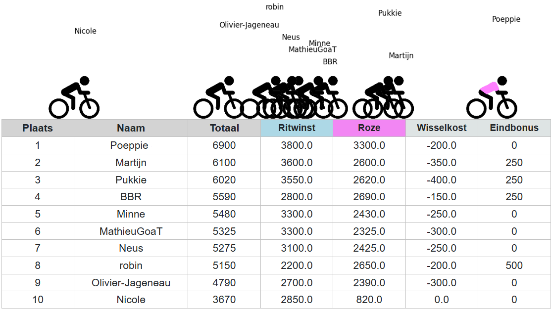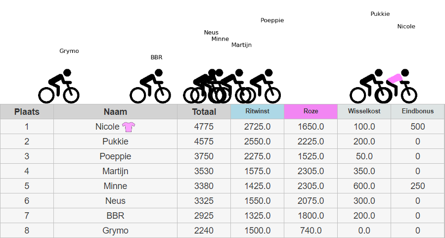 Overzicht eindstand